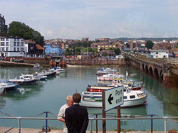 Folkestone Harbour swing bridge, viaduct and the inner harbour looking north in June 2007.