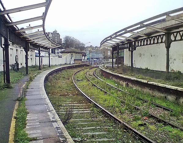 Folkestone Harbour station looking north-west along the up platform in 2012.
