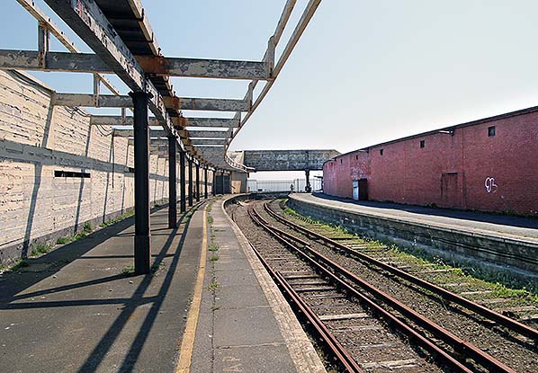 Folkestone Harbour station looking south-east towards the pier in May 2014.