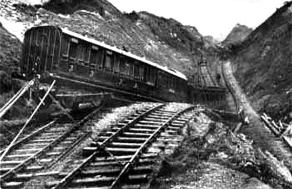 ![]() The 6.10pm Ashford to Dover service came to a halt on the land slide on 19 December 1915. This view is looking east towards Warren Halt. Martello Tunnel is behind the photographer.