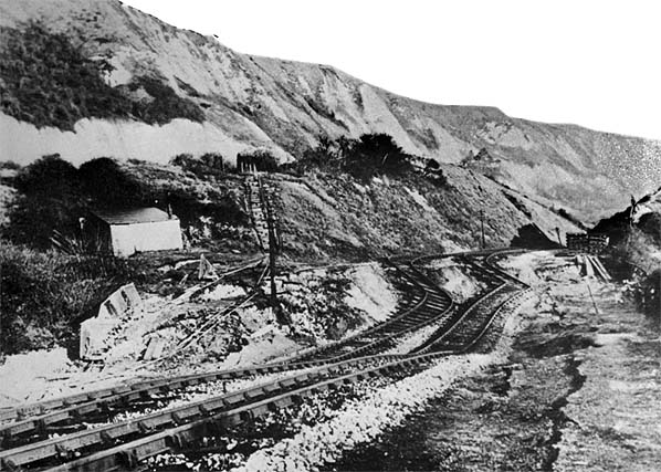 ![]() The landslip stretched over the over a mile, the full length of The Warren. This view is looking east towards the Eagle's Nest; Warren Halt is behind the photographer.