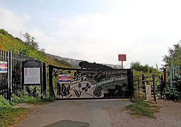 ![]() Looking east along the private road on the south side of the railway line in September 2014. There is a public car park to the right and another 50yd back. Beyond this point there is no vehicle access. The track beyond this point is Railtrack property and, although not dedicated to the public, pedestrian access past the site of Warren Halt is permitted.