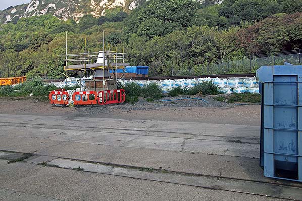 ![]() Two lengths of narrow gauge track dating from the 1950s can still be seen embedded in the concrete in the works yard in September 2014.