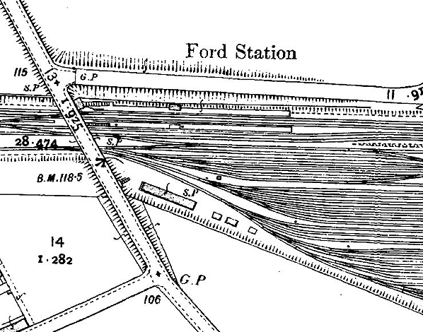 Notes: Ford station was located on the Lancashire & Yorkshire Railway’s (LYR) North Mersey Branch which ran from Fazakerley Junction, on the Liverpool Exchange to Wigan Line, to Gladstone Dock. The line was opened in 27 August 1866 as an important goods line linking the north Liverpool docks with the LYR route to the east. Connections from the North Mersey Branch to the LYR Liverpool to Ormskirk line where provided at Sefton Junction (Aintree) going from west to north and to the LYR Liverpool and Southport line at North Mersey Branch Junction (Litherland) going from East to South.