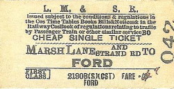On 1 January 1923 that LNWR was in turn merged into the London, Midland and Scottish Railway (LMS). The LMS withdrew the Gladstone Dock service on the 7th of July 1924 leaving Ford with only the services to Liverpool Exchange and to Aintree Sefton Arms. In the summer of 1932 the LMS provided Ford with twenty two trains to Liverpool Exchange and twenty trains to Aintree Sefton Arms. The first train was for Liverpool Exchange and departed from Ford at 6.17 am. The last was also for Liverpool Exchange and departed at 10.21pm.