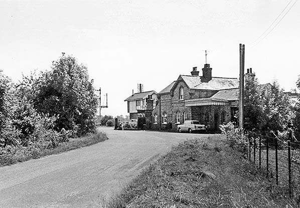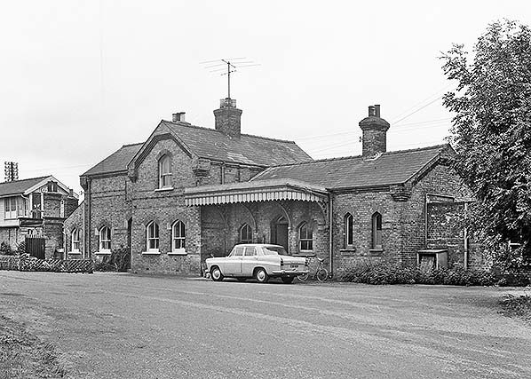 Photo by John Mann ![]() The station approach and forecourt in July 1969. In 2015 the approach road still exists but is heavily overgrown, particularly at its Station Road end. The signalman's car can be seen parked beside the box. Note that the canopy is still present over the entrance to the booking hall. Although by then closed for almost four years, at this time Fordham station remained in better condition than other stations which were still open.