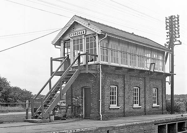 Photo from John Mann collection ![]() Fordham signal box c1971. This signal box does not appear to have had a toilet, so presumably signalmen used the station facilities which remained after closure.