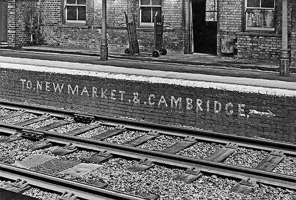 The direction sign on the up platform face in July 1969, almost four years after closure to passengers. Quite why the full stops were considered necessary is not known. Note the sack barrows on the platform; perhaps they had simply been abandoned or the station building was still used for some purpose or other - by permanent way engineers for example.