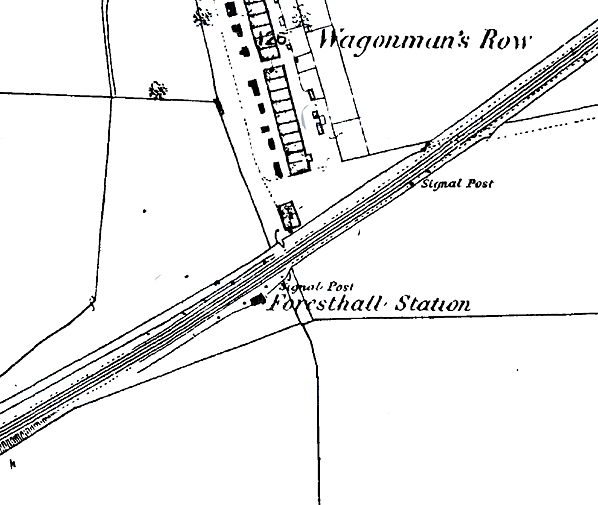 Note:The OS 1:10,560 map of 1865 rendered the name as Foresthall. A B&T system map published between 1864 and 1871 called the station Killingworth.