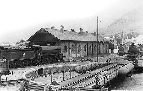 Fort William engine shed in July 1957, the goods yard is to the rear.