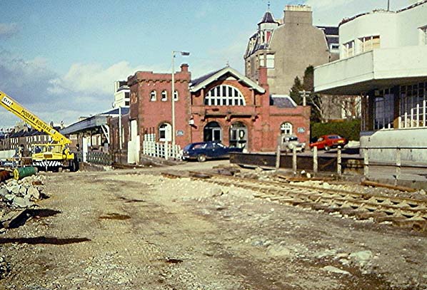 Fort William station in 1975, shortly after closure. The line on the right ran onto the pier.