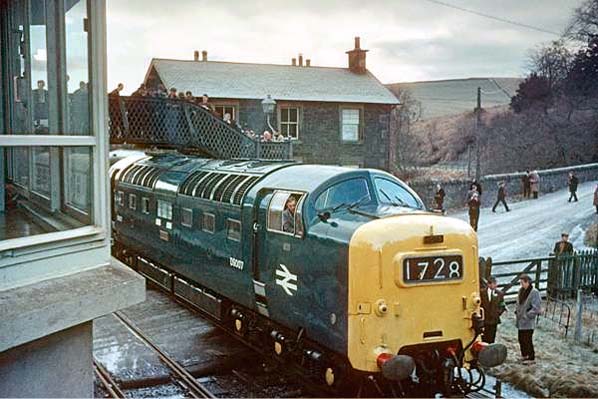 In spite of the protests, the line was closed on Monday 6 January 1969. The last passenger service on the line (and the last train to traverse the entire route) was 1M82 21.56 Edinburgh - St. Pancras sleeper, on Sunday 5 January 1969, hauled by Class 45 D60 ‘Lytham St Annes’.