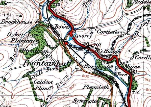 Notes: Fountainhall station opened on 4 August 1848 as part of the NBR's line to Hawick. It served the hamlets of Burnhouse and Fountainhall but neither had more than a handful of houses. The station was initially named Burn House but this was changed to Fountainhall in 1849