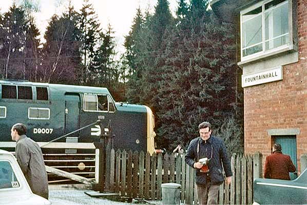 ![]() The RCTS ‘Farewell to Waverley’ railtour heading north from Fountainhall station on 5 January 1969 hauled by D9007 'Pinza'.