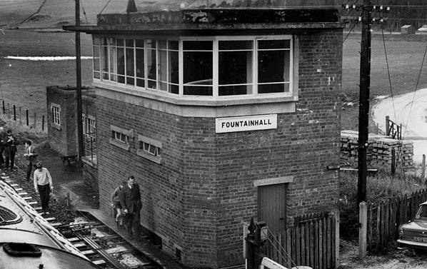 ![]() Fountainhall signal box during a visit by The RCTS ‘Farewell to Waverley’ railtour heading north from Fountainhall station on 5 January 1969.