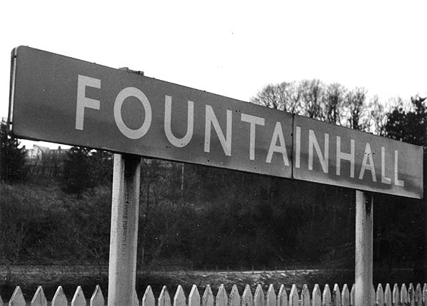![]() Fountainhall station name board taken during a visit by The RCTS ‘Farewell to Waverley’ railtour on 5 January 1969. A standard ScR nameboard is seen.