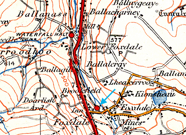 Notes: Foxdale was a terminus station situated on 2.5 mile branch line that ran up to St John’s. It opened with the line on the 17/08/1886 having been sponsored by the Foxdale Railway Company who made an end on connection with the Manx Northern Railway at St Johns.