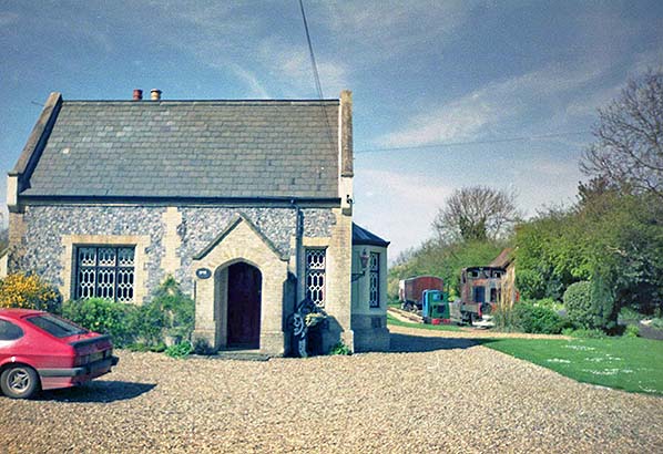 ![]() Fransham station looking west from the site of the level crossing in April 2000. The present owner bought the station in the 1980s and began a gradual process of renovation.