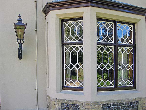 ![]() The intricate glazing at Fransham is typical of station buildings erected by the Lynn & Dereham Railway. The lamp is not original equipment. October 2017.