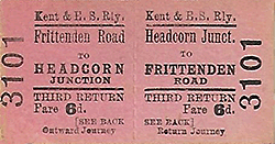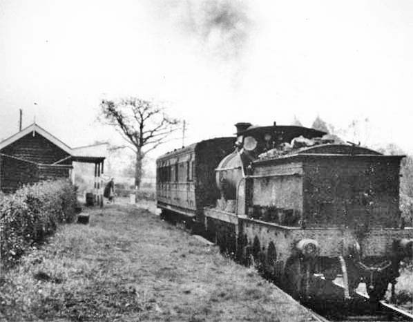 Photo from John Mann collection ![]() Another Wainwright Class O1 0-6-0 is seen at Frittenden Road station in the early 1950s. One of two sidings at the station runs behind the hedge at the back of the platform.