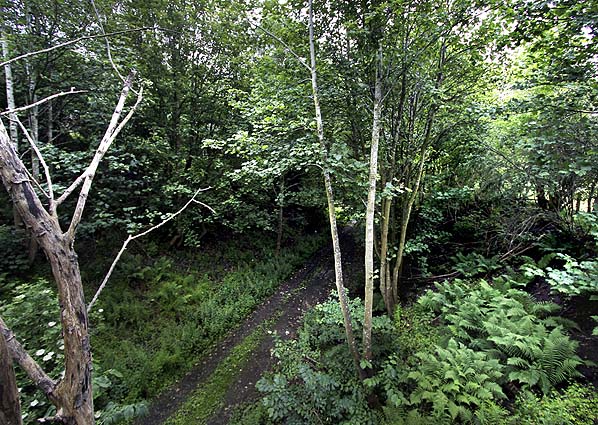 Site of the up platform at Fushiebridge station seen from the footbridge in May 2011.