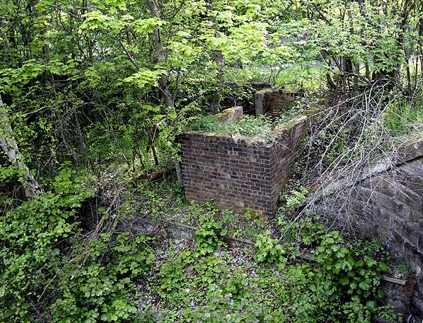 Unknown building on the south side of the road bridge in May 2011. This building is