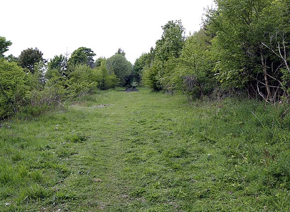 ![]() Looking north towards Fushiebridge station in May 2011. The goods yard was left at this point with high level sidings to the right.