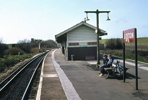 Looking west towards West Kirby (ahead) and Wrexham (left) at Bidston station in April 1977. Photo by Alan Young