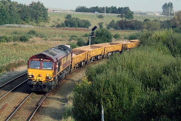 Looking north along the Wrexham and Bidston line towards Dee Junction in October 2010 as an engineers train rounds the curve. Photo by Bevan Price