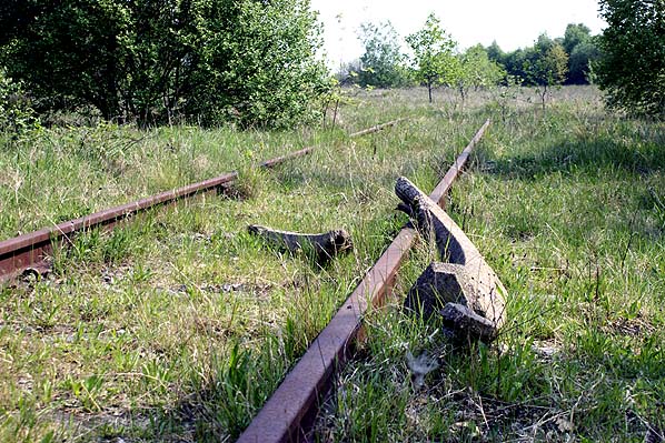 A section of broken lamp column that would have at one time provided light for the extensive sidings at Bidston Dock in April 2011. Photo by Paul Wright