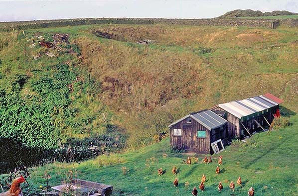 Catlow Quarries. Photo by Alan Young ![]() In September 1992 the northern end of the disused Catlow Quarries, east of Southfield Lane, is in use for keeping poultry, as well as for some informal tipping of rubbish. The henhouses have now been removed and the fringes of the quarry have been planted with native trees and shrubs to attract a range of wildlife.
