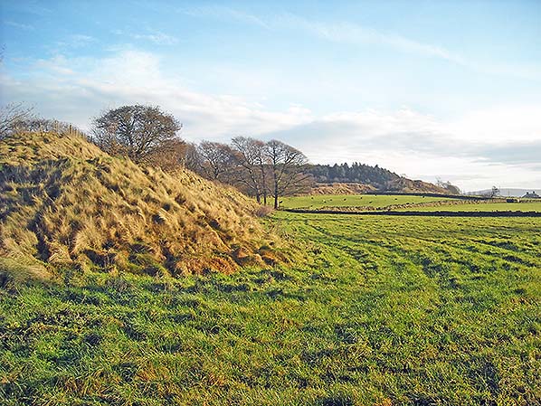 Photo by Alan Young ![]() Looking east across Cricket Field, south of the abandoned Catlow Quarries, their extent can be seen in this photo of December 2016. The spoil heap in the foreground lies south of Southfield House; the eastern section of the quarry beyond Southfield Lane is identified by the distant coniferous plantation. The name of the field in the foreground recalls that in the eighteenth century pleasure grounds were laid out around Southfield House.