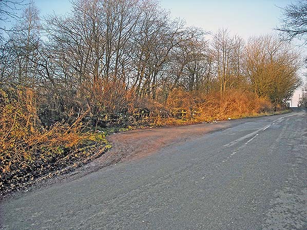 Photo by Alan Young ![]() Looking south along Southfield Lane towards Catlow in January 2005. This photo was taken in anticipation of major changes to the landscape in the light of plans for a holiday village which have not happened. The layby on the right corresponds to the point where the lane left for Southfield Chapel and Southfield House. This well-wooded scene would have been very different a century ago, with no trees, but active quarries on both sides of Southfield Lane and a blacksmith’s about 100yd ahead with premises on both sides of the lane.