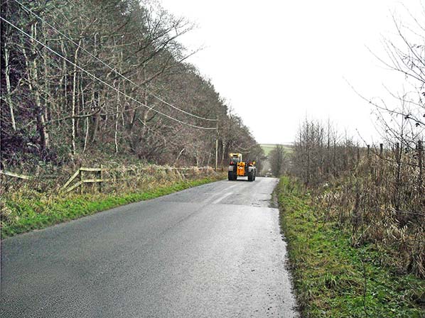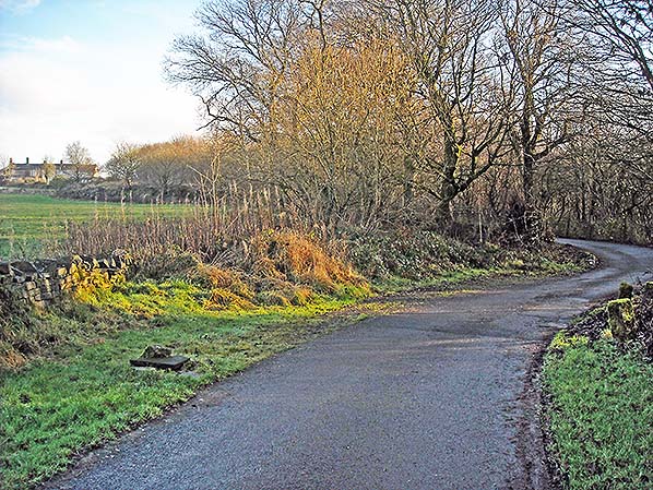 Photo by Alan Young ![]() Southfield Lane, looking north-west in December 2016. The layby to the left is the point where the lane left for Southfield Chapel and Southfield House. The lane was diverted c1900 to enable quarrying to take place across its route.