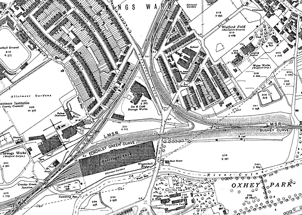 The construction of the new lines in the Watford area included a triangular junction with a spur enabling trains from Croxley Green or Rickmansworth to run south to Bushey and on to London via the new Croxley Green Curve although, in practice, this service only ever ran from Croxley Green. The western end of the curve retained the name Croxley Green Junction and included the junction between the Croxley Green and Rickmansworth branches. The eastern end of the curve became Colne Junction. A substantial new depot, known as Croxley Green sheds or depot, was built to the south of the curve adjacent to Croxley Green Junction to house the new electric trains. It opened on 16 April 1917 when the Bakerloo line was extended.