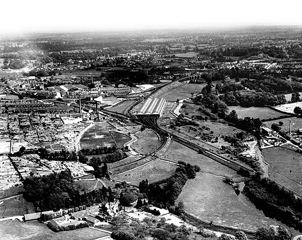 Croxley Green Junction and depot in 1921. The depot is seen in the centre. Croxley Green triangular junction is to the north of the depot with the Croxley Green Curve to the right and the Watford line to the left. In the bottom half of the picture the Rickmansworth branch is to the right with the Croxley Green branch to the left. Click to enlarge.