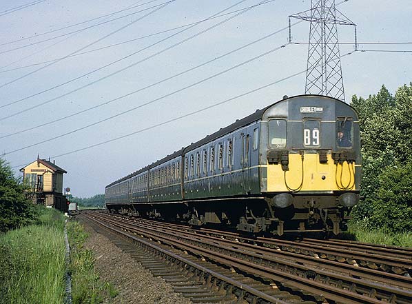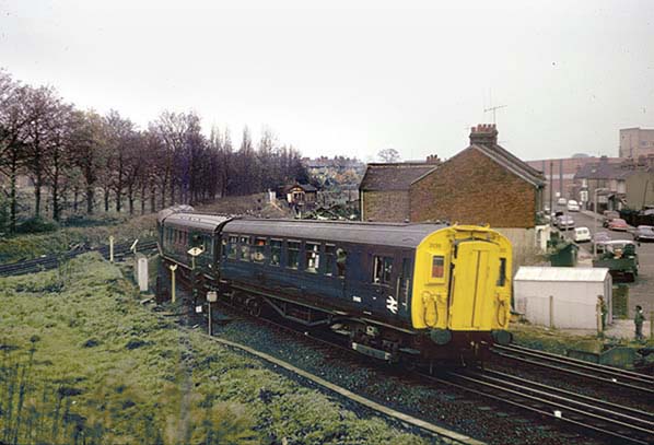 The last passenger service used the Croxley Green Curve on 3 June 1966, so the closure date for passenger traffic was 6 June 1966. It closed to all traffic on 19 September 1966. One would think that there would be no traffic at all after the withdrawal of the passenger service, but one thing that the curve must have been used for was the turning of EMUs. From the start of this electrification up to the summer of 1966 all six-car trains - and most workings were six cars - had the motor cars marshalled at the outer ends. From some time in 1966 however, all units had the motor cars at the London end of the train. The Croxley Green triangle was the only place on the system where the units could be turned and, once the curve had gone, all trains remained the same way round.