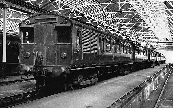 An aging Oerlikon EMU in Croxley Green shed in the late 1950s. A class-501 EMU is