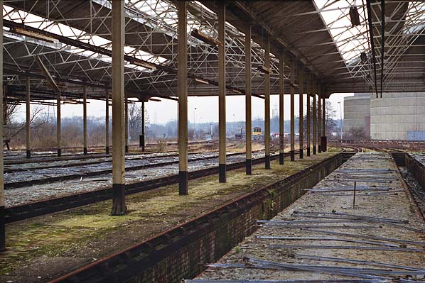 Croxley Green depot in June 1987. BRCW Class 104 DTS 54179, A DMU passes with the 15.40 Watford Junction - Croxley Green service.