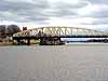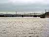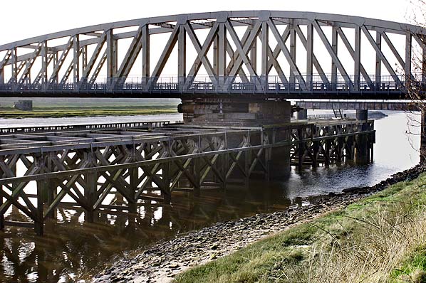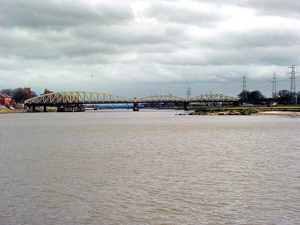 The Bridge was opened on 3rd August 1889. That day was the Golden Wedding anniversary of Sir William Gladstone and his wife Catherine. Mrs Gladstone was invited to formally open the bridge. The Gladstones arrived at the bridge on a special train from London Kings Cross which arrived at the bridge at 3.37 pm - twenty minutes later than scheduled. Huge crowds had gathered to see the event. The special train crossed the opening span of the bridge and came to a stop on the first fixed span. Accompanied by Sir Edward Watkin, Chairman of the MS&LR, the party alighted onto a specially constructed platform. The train then reversed to the north bank. Mrs Gladstone was then presented with a magnificent bouquet by one of the contractors. When she picked it up there was a button underneath which she was invited to press; when she did so the span swung open in only 40 seconds. Catherine Gladstone then closed the span and announced, ‘I have the greatest pleasure in declaring the bridge open and calling it by the name of the Hawarden Bridge’. Great cheers arose from the crowds. The bridge was reopened, and a flotilla of vessels passed through. When the ceremony was over the Gladstones and other guests were served refreshments at a marquee: the MS&LR spared no expense! ![]() Hawarden Bridge looking east from the Commander's position on RNLI Hovercraft H005 Hurley Spirit which was on route to Chester as part of a training exercise on 11th March 2011. The Hovercraft passed under the larger arched span, seen towards the left, which was the span that originally opened to allow larger ships to pass.
