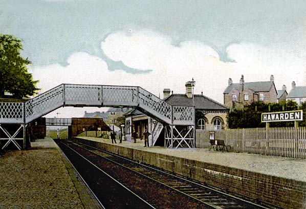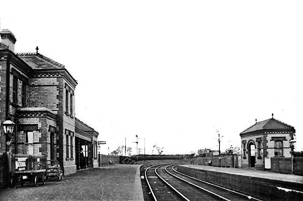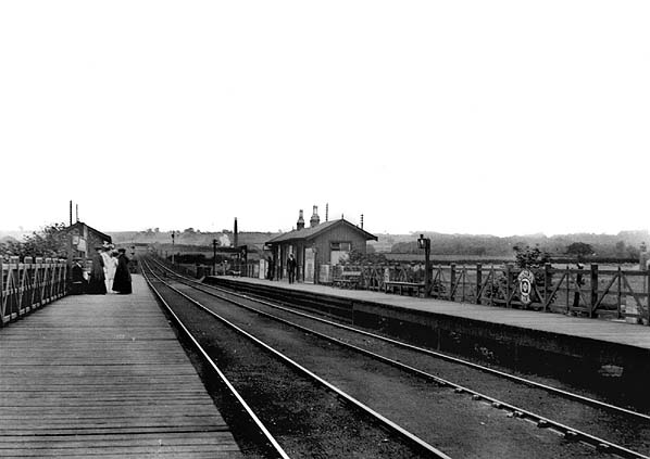 The Hawarden Loop opened on 29th March 1890, and two days later through trains began to operate between the MS&LR and the WM&CQR systems. The line was a double-track railway 4½ miles long. There were three stations located on the loop. At the southern end was Buckley Junction which replaced Buckley station when the line opened. There were, however, many complaints from the people of Buckley because the new station was at too greater distance from the village. In 1893 the WM&CQR reintroduced passenger services to Buckley, but they were withdrawn for good in 1895. Buckley Junction had two platforms. Its building was a two-storey structure of the yellow brick that the WM&CQR used at other stations on their lines. The railway architectural critic, Gordon Biddle in Victorian Stations (1973) opined that at the stations on the loop 'red terra-cotta trimmings and cresting, Minton-tiled floors and twisted columns combined with yellow brick to produce garish buildings quite out of key with the local vernacular.' ![]() Hawarden station looking north in the early years of the 20th Century. Beyond the platforms the line can be seen to drop steeply.