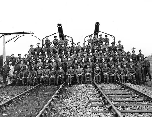 After initial training at Catterick Camp the battery moved south arriving at Bishopsbourne in February 1941 after a 43 hour journey from Catterick disguised as a string of banana wagons. On the bright spring morning of 13th February 1941, the gun was pushed out of the tunnel by a WD diesel engine, through Bishopsbourne station to the Kingston spur, where it was fired for the first time sending several rounds into the English Channel. Although the villagers had been warned to open all their windows, considerable damage was caused in Kingston and Barham by the shock waves which brought down a number of ceilings. As a result, only two other test firings were made near World’s Wonder bridge and at Lickpot bridge. It was on one of these trips that an officer in charge, on cautioning his men to be mindful of the low bridges, was promptly knocked unconscious himself as the gun passed underneath South Barham bridge! Apart from the blast damage the track had to be strengthened every time it was fired. Winston Churchill inspected the gun at Bishopsbourne on 20 June 1942 and later that day toured the gun emplacements at Elham and Adisham. The battery had its headquarters at Charlton Park with offices at Bishopsbourne station. Although it never fired in anger, the gun was frequently photographed in aggressive poses and was billed as a 'fearsome cross-channel monster' but the truth of the matter was that being a howitzer it had barely enough range to command the Kent coast and had no hope of putting a shell even half way across the channel. Although the gun never sustained a direct hit, on one occasion a near miss caused some damage to its axle boxes whereupon the SR’s Ashford Works Manager was summoned for an inspection. He arranged for the repairs to be carried out at the Ashford Wagon Works. On another occasion a bomb landed on the track at Kingston but failed to detonate. ![]() The 13th Super Heavy Battery RA, somewhere in Kent