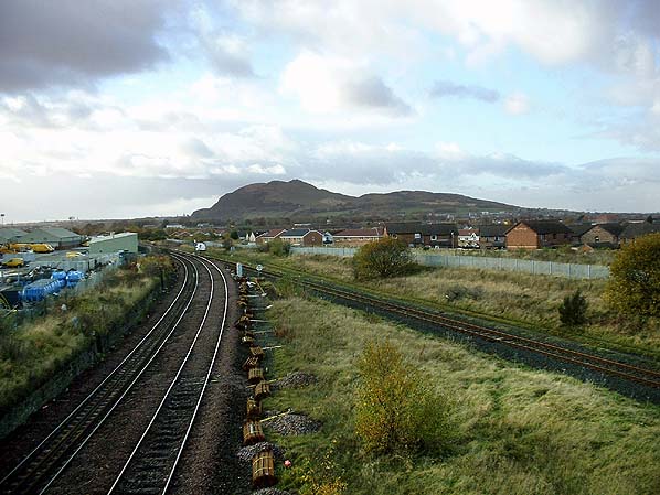 and coal depot by that time. ![]() Niddrie West Junction. The Innocent comes up to this line through the houses to the right. The 2 lines to the left are Millerhill to the Edinburgh Suburban Loop and the 2 lines to the right come up from the ECML at Portobello.