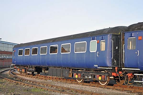 The Class 488 designation was a little odd as it was in a series normally used for Southern Region electric multiple-units although it was not unique as the Southern Region's former TC trailer sets were also given set numbers in the same series. Class 488 sets also followed Southern practice in that they were given 4-digit set numbers, for example 488210 was given set number 8210. In other words the set number was the class number minus the first two digits. Set 8210 was that which ended up at Marchwood, it having been withdrawn (from Gatwick Express) back in 2002. The set comprised First Open 72509 and Second Open 72635, their original numbers being 3398 and 6128 respectively. The 7xxxx number series was also used for electric multiple-unit stock. The ex-2-HAP vehicles became Class 489 and these also bore unit numbers comprising the last four digits, thus 489101, for example, bore unit number 9101. Class 489 was classified GLV; Gatwick Luggage van and not Guard Luggage Van.