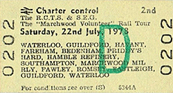 The title 'Marchwood Volunteer No.2' suggests that there was also a No.1 and indeed there was, on 22 July 1978, although it was titled simply 'The Marchwood Volunteer'. This tour ran from and to Waterloo and used 'East Sussex' Class 207 DEMU sets 1306 and 1313. The tour visited Hamble and Fawley as well as venturing onto the Marchwood Military Railway.