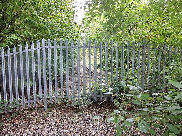 From the other side of the fence, the remains of the track from the loop line. We are looking east towards Rose Grove from the western (Padiham) side in September 2018. The fence and track were still in situ in 2021. The final track removal from Padiham up to Rose Grove stopped here and this fence was erected to keep the public off railway property.