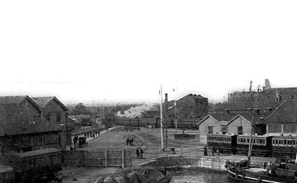 Following the demise of the banana trade the berths were redeveloped as the Southampton Oceanography Centre which opened in April 1996 ![]() ![]() The northernmost point of the Empress Dock in the early 20th century looking north towards the main dock gate (now No.4). At centre right is the former coaling stage at berth 13 in the Inner Dock with warehouses at the top right. Beyond these is the South Western Hotel adjacent to the former Terminus Station to where the passenger train is headed.
