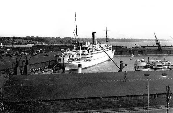 ![]() Empress Dock with the Royal Mail Lines vessel Atlantis at Berth No.26.The sheds across the bottom of the photo are berths 20/21.