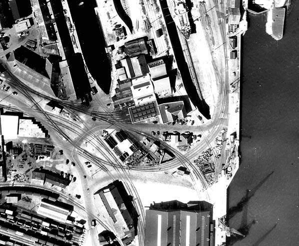 Aerial view of the Eastern Docks with the locomotive depot in the centre of the picture.