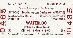 ![]() Passenger Stations serving Southampton Docks![]() The Queen Mary is seen at 44 Berth shed in the Ocean Dock in April 1946. She is seen in wartime grey, and with the big degaussing coil still fitted to stop her setting off the German magnetic mines. The Queen Mary was repainted in Cunard colours by 1947, when she re-entered civilian service
